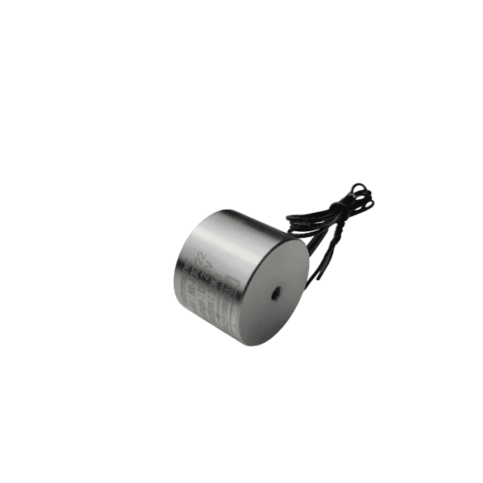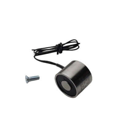 Bei 24 V Gleichstrom aktiviert sich die Haftkraft sofort. Durch die solide Metallkonstruktion und die präzise Polfläche (Ø 12 mm) bietet der Magnet hohe Stabilität und beständige Haltewerte. Dank M4-Gewinde ist eine schnelle und sichere Montage möglich.