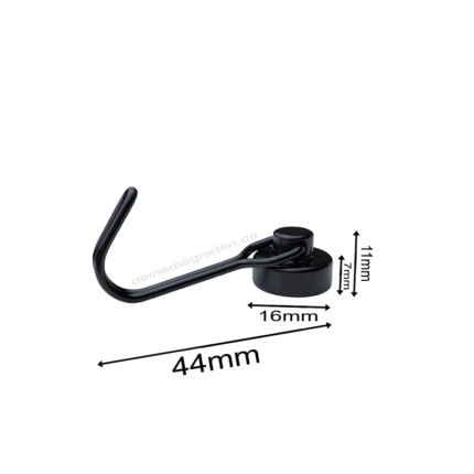 10x Magnethaken Ø16mm Neodym Magnet mit Haken Schwarz, Hakenmagnet – hält max 6kg