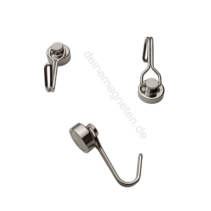 Magnetischer Haken 16mm (silber) – drehbar 180°, Neodym im Topf (10-Stück-Set)