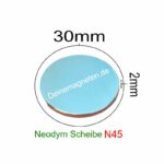 Neodym Magnet 30x2mm N45 Scheibe, Rund, Vernickelt, max °80