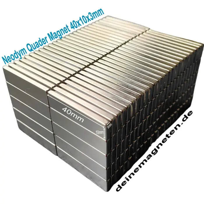 📊 Technische Daten – Neodym Quader 40 × 10 × 3 mm, N35