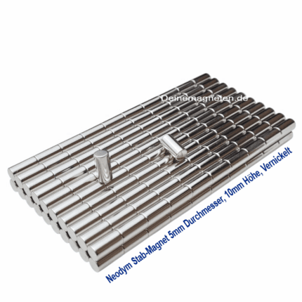 Neodym Magnet 5x10mm Stab, N35, Axial, Nickel, max °80