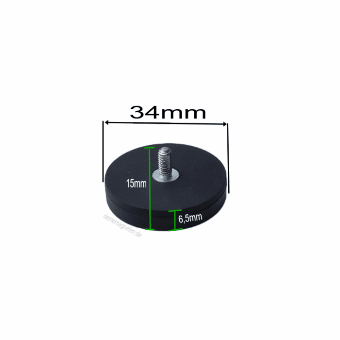 Neodym-Magnetsystem gummiert mit M4-Außengewinde – Ø34 mm
